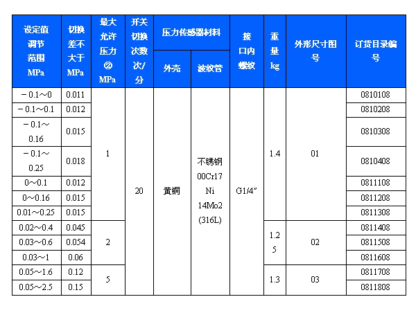 502/7DZ雙觸點(diǎn)壓力開關(guān)采用波紋管式的傳感器,可用于中性氣體、液體介質(zhì)。控制器的設(shè)定值可調(diào),調(diào)節(jié)范圍0.1~2.5MPa。